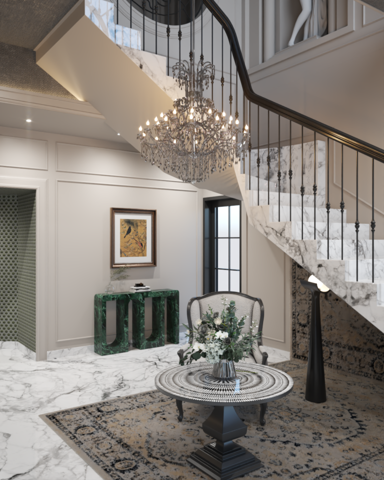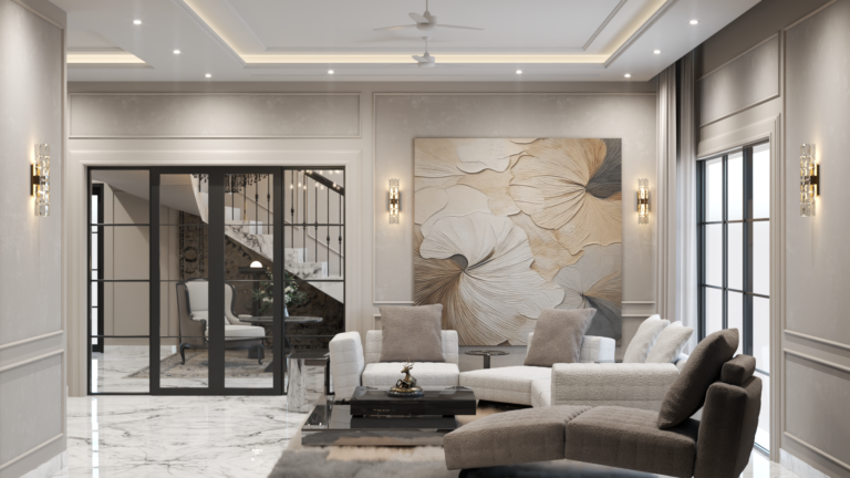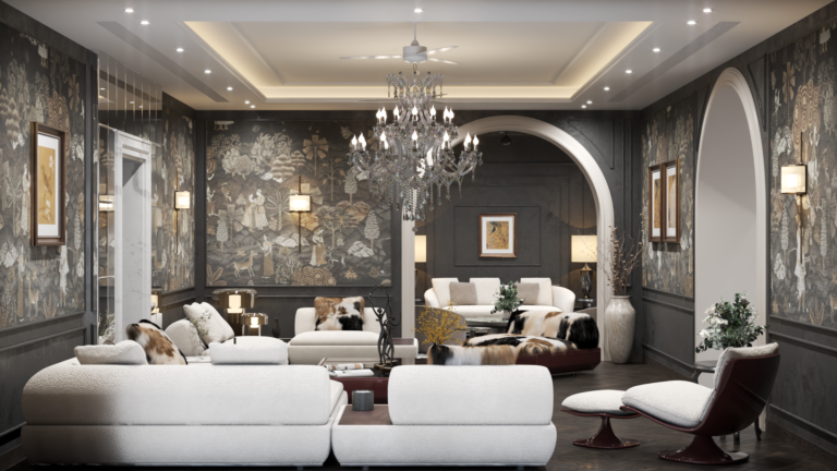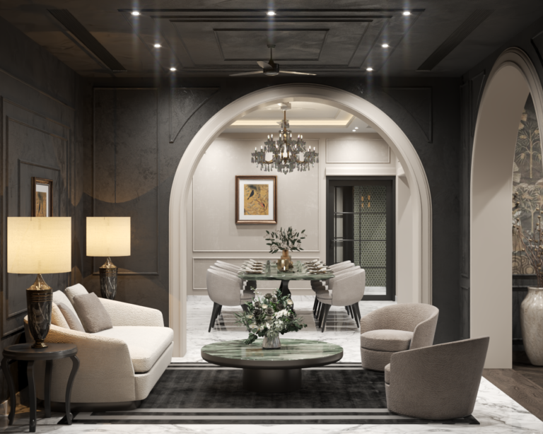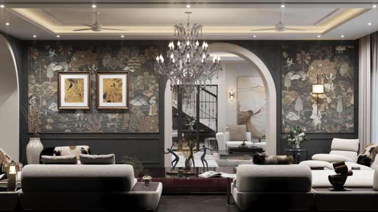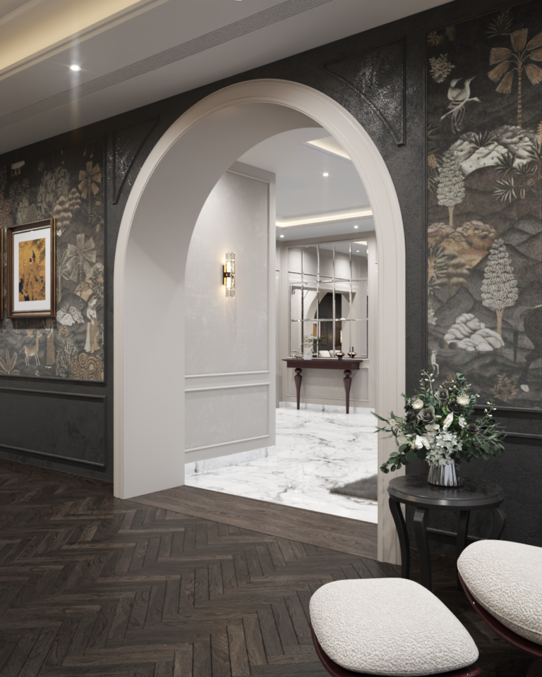 A luxurious residence, blending timeless elegance with modern functionality. Featuring intricate wall art, plush furnishings, and bespoke designs, this home reflects refined living.